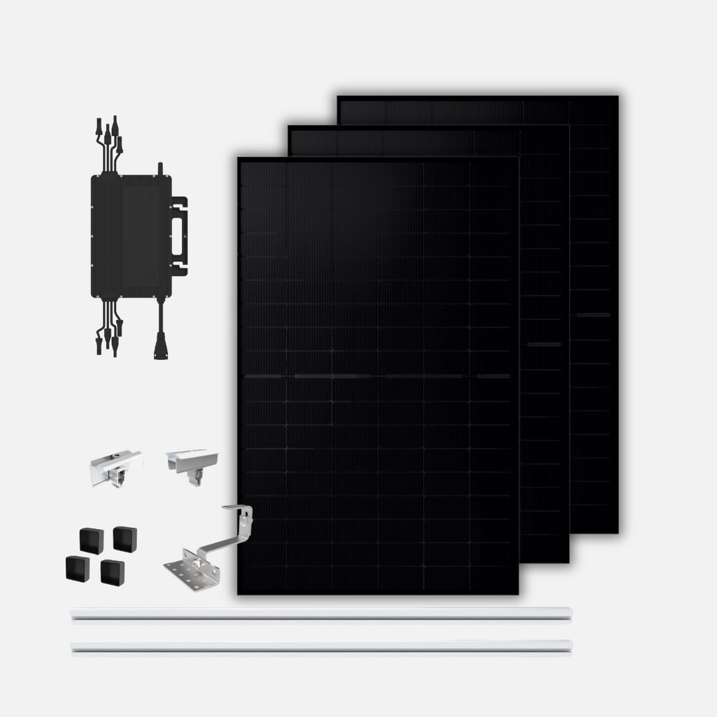 - 3 bifaziale Solarmodule mit je 440 W Leistung (gesamt 1760 W) in moderner Full Black-Optik – dank bifazialer Technik wird auch Licht auf der Modulrückseite genutzt, was den Ertrag deutlich erhöht.