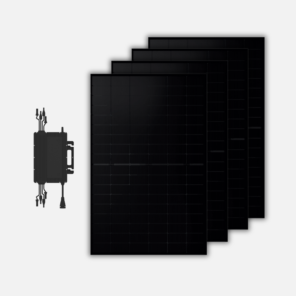 - 4 bifaziale Solarmodule mit je 440 W Leistung (gesamt 1760 W) in moderner Full Black-Optik – dank bifazialer Technik wird auch Licht auf der Modulrückseite genutzt, was den Ertrag deutlich erhöht.