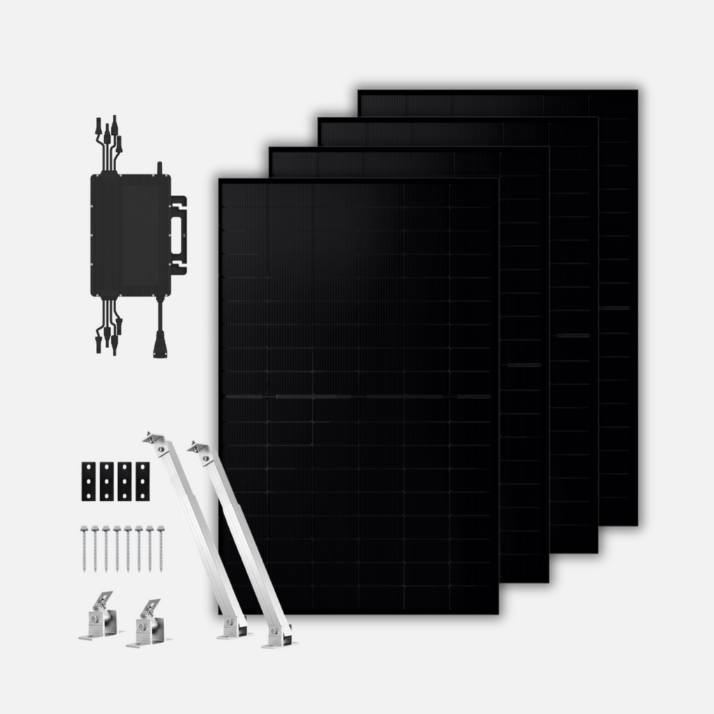 • 4 bifaziale Solarmodule mit je 440 W Leistung (gesamt 1760 W) in moderner Full Black-Optik – dank bifazialer Technik wird auch Licht auf der Modulrückseite genutzt, was den Ertrag deutlich erhöht.