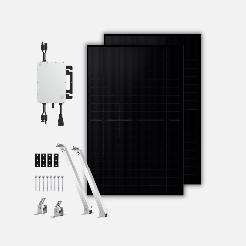 - 2 bifaziale Solarmodule mit je 440 W Leistung (gesamt 880 W) in moderner Full Black-Optik – dank bifazialer Technik wird auch Licht auf der Modulrückseite genutzt, was den Ertrag deutlich erhöht.